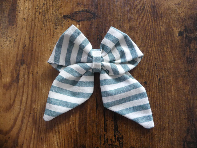 Barrette réalisée à partir d'un drap chiné à Emmaüs.