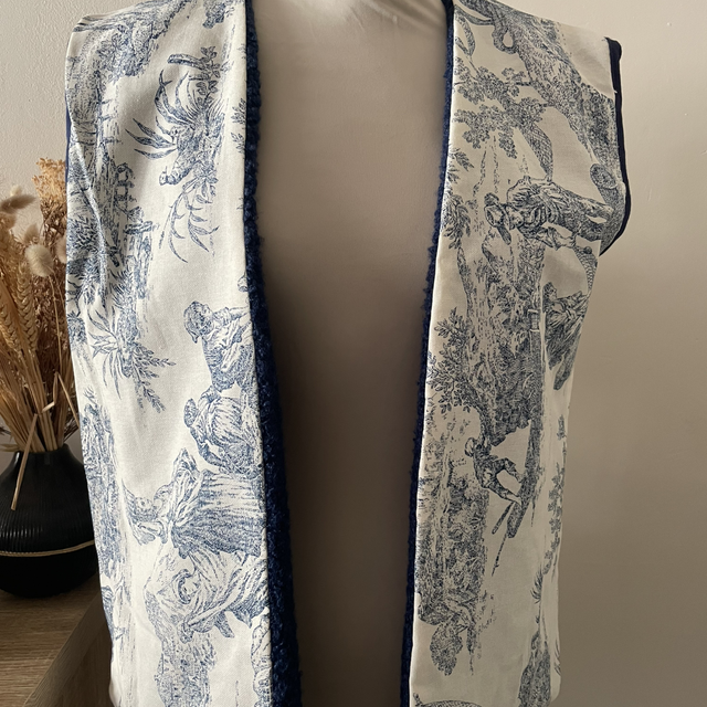 Gilet réversible réalisé en toile de jouy et en tissus boulette pour vous apporter du confort tout en stylisant vos tenues.